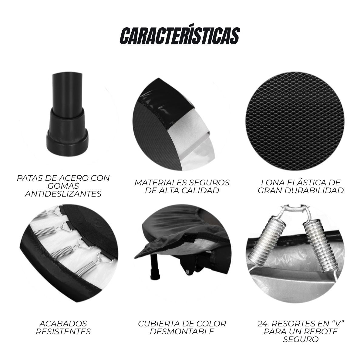 - Entrenamiento de bajo impacto: Su base de lona elástica y 24 resortes en forma de V ofrecen un rebote uniforme y silencioso, ideal para proteger tus articulaciones mientras mejoras tu condición física.