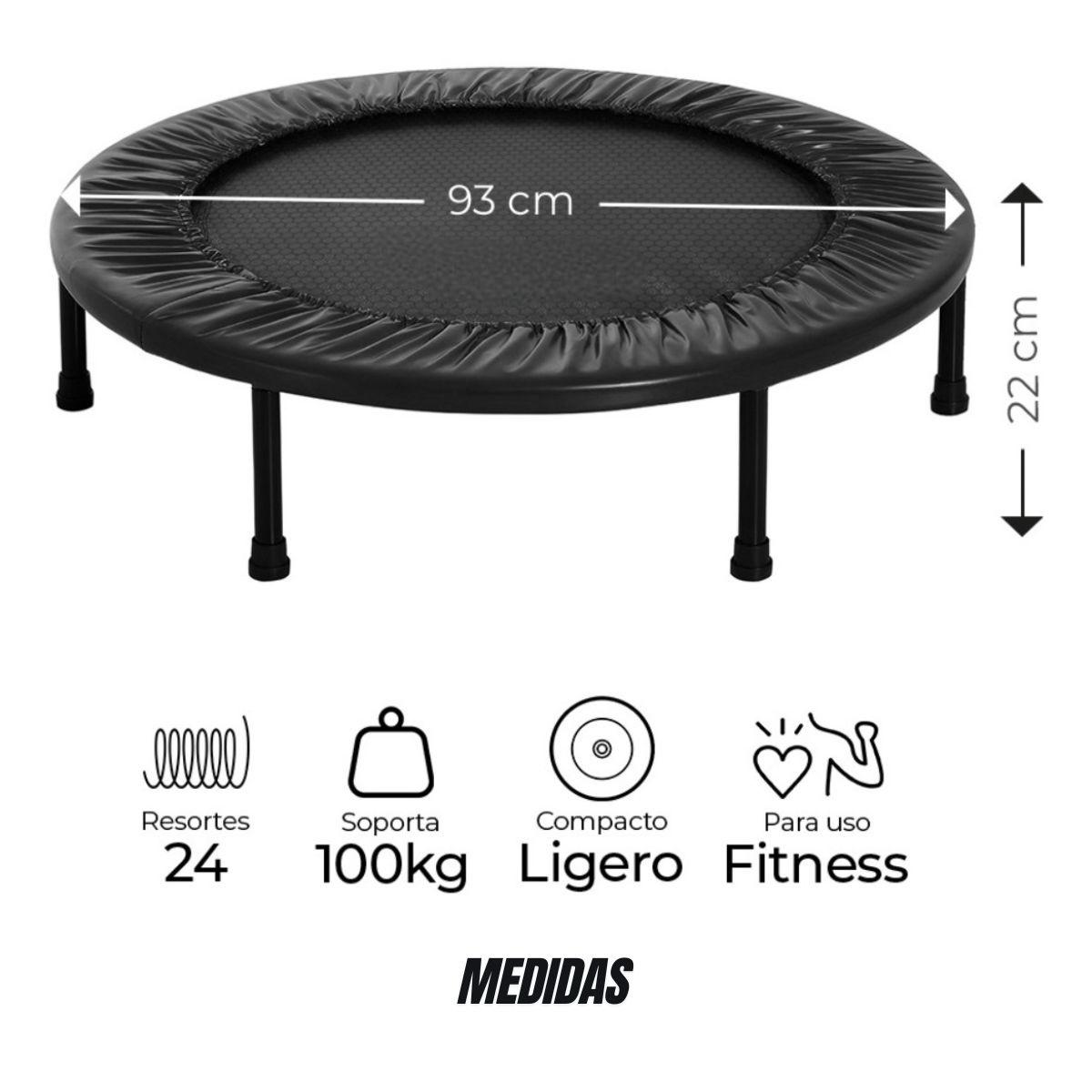 - Diseño compacto y portátil: Con 93 cm de diámetro y un peso ligero, este trampolín se adapta fácilmente a espacios reducidos. Puedes usarlo, guardarlo o transportarlo sin complicaciones.